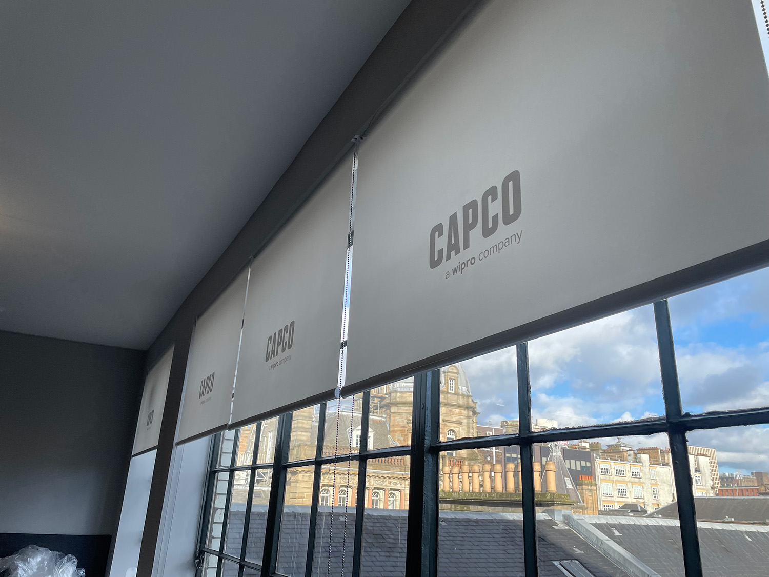 We speak to lots of business owners who are based in city centre locations, and due to planning restrictions they are not allowed to erect any effective signage on the outside of the building, so they struggle to attract new clients as most of the passing footfall don’t even know they are there. Our bespoke printed blinds help new and existing clients find them easily. Sometimes it’s a bit different, some businesses located in large bland business centres want to “stand out” from the other occupants and our custom printed blinds have helped them to do that. Our bespoke blinds are the perfect way to showcase your brand while maintaining a professional look. With a variety of styles and colours available, you can elevate your office space and leave a lasting impression on clients and visitors.